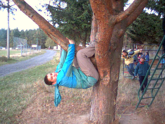 Po návratu do chalupy děti lezly na stromy a Lucka spadla tak nešikovně, že si zlomila ruku. Statkářka s ní byla v nemocnici ve Stodě, kam je zavezl ochotný soused. Ostatní šli zatím do lesa hrát terénní loto. Po cestě jsme viděli tohoto lenochoda.