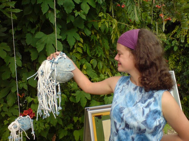 Anezka s rybou ve venkovni expozici v Arealu JIH