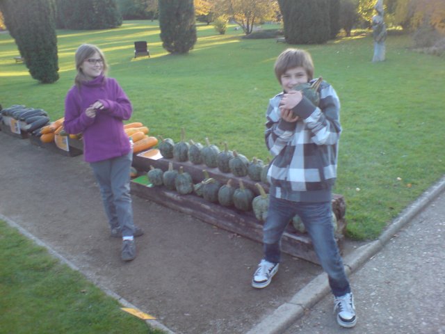 Uroboros, hlava v dlanich, za hlavou tykev